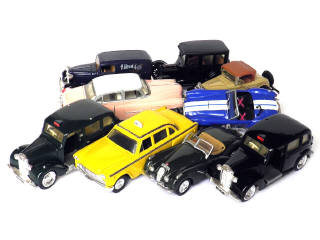 miniatures reproduisant les modèles : AUSTIN, CHECKER, JAGUAR, FORD, CADILLAC & SHELBY