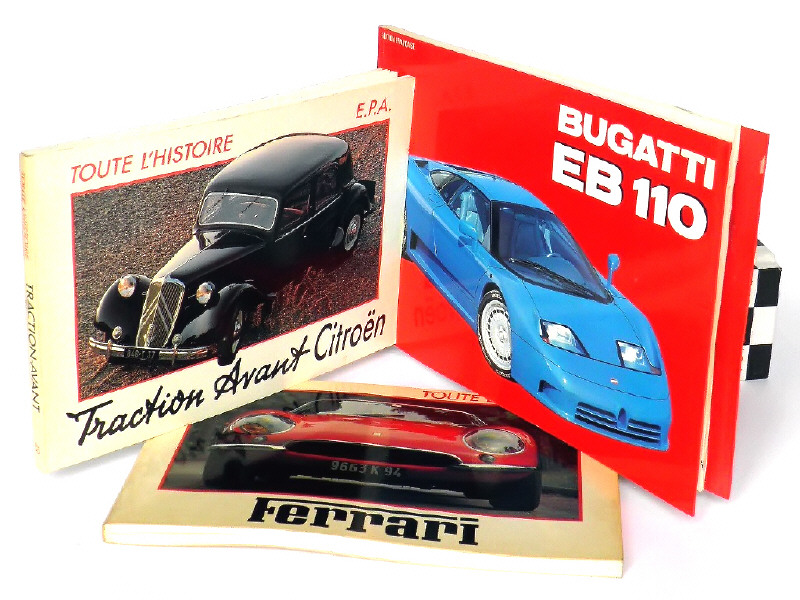 on y retrouve les marques : TRACTION AVANT CITROËN, FERRARI - on y joint un livre BUGATTI EB 110
