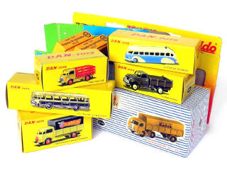 on y retrouve les marques : DINKY ATLAS & DAN TOYS - on y joint : 6 chemises de boîtes - états de 'a' à 'b' (ELIGOR, VITESSE, SOLIDO & CORGI)