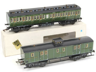 comprend : voyageurs de 3ème classe & fourgon à bagages - quelques frottements plus ou moins importants sur l'ensemble des carrosseries - légères traces d'oxydation par endroits - une boite non d'origine