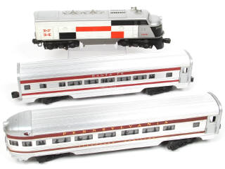écartement '0' - comprend : motrice diesel 8851 (état 'C', moteur électrique fonctionne, nombreuses rayures, frottements & petits éclats), voiture 'SANTA FE' & voiture de queue 'PENNSYLVANIA'