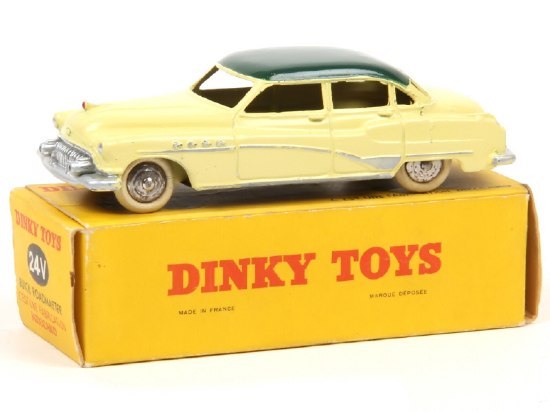 DINKY TOYS (FRANCE) 24V BUICK ROADMASTER (version avec intérieur de toit quadrillé & jantes chromées) jaune clair, toit vert