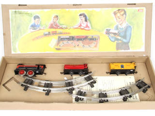 écartement '0' - reproduction de 1997, avec certificat d'édition limitée n°480/5000 - contient : locomotive à vapeur de type 020, 2 wagons ('SHELL' & 'POLIL') & 4 rails courbes - quelques petits accrocs sur la boite