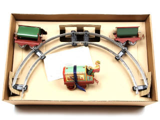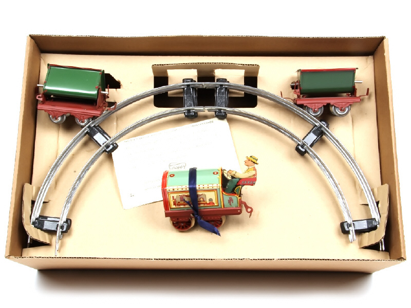 écartement '0' - reproduction de 1991- avec certificat d'édition limitée n°904/5000 - contient : chariot avec moteur mécanique (fonctionne), 2 wagons à benne basculante & 2 rails courbes