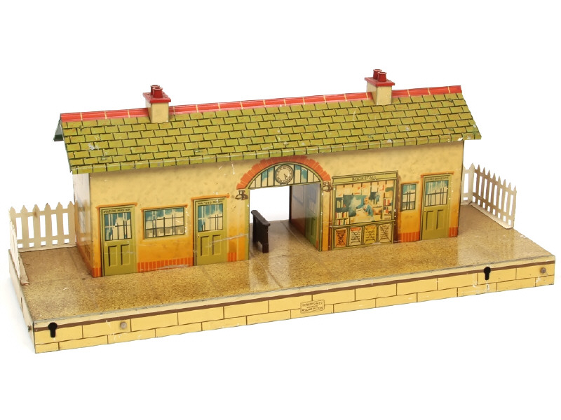 HORNBY 'O' (GB) Gare en tôle lithographiée jaune, rouge & marron