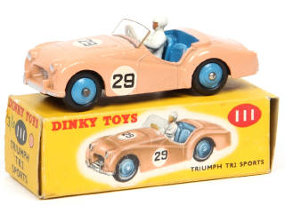 DINKY TOYS (GB) 111 TRIUMPH TR2 de compétition rose, intérieur & jantes bleus