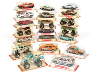 petite échelle - miniatures reproduisant notamment les modèles : SEAT, OPEL, RENAULT, MERCEDES & BMW - sous blister jamais ouverts (certains en état 'c' & plus ou moins jaunis)