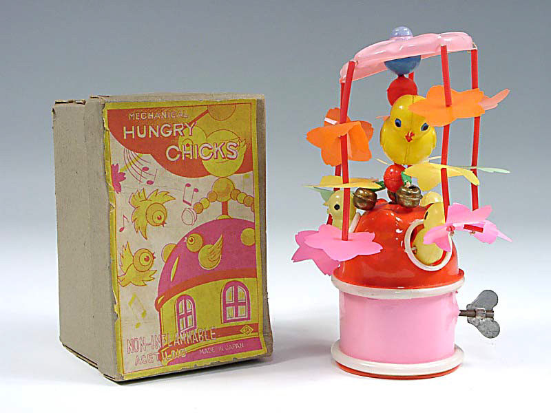 T.A (JAPON) Manège avec oiseaux en celluloïd rose, jaune & rouge