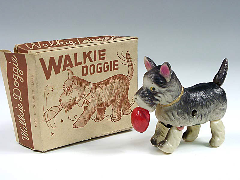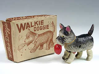 longueur 10 cm - mécanisme à clef (fonctionne) - en action, le chien remue les pattes