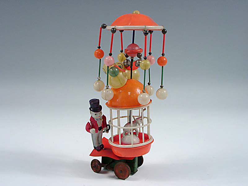 hauteur 25 cm - mécanisme à ressort (fonctionne) - en action, le manège décrit des cercles tandis que la partie supérieure tourne