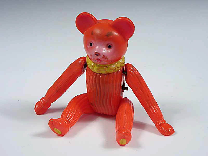 DIVERS (JAPON) Ourson mécanique en celluloïd rouge orangé