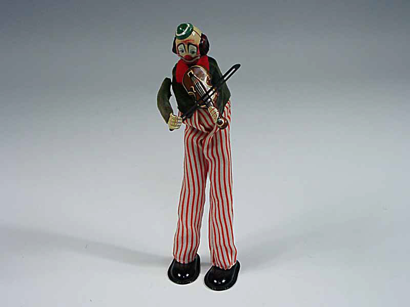 hauteur 22 cm - mécanisme à ressort (fonctionne) - en action, le clown se balance de droite à gauche tout en jouant du violon