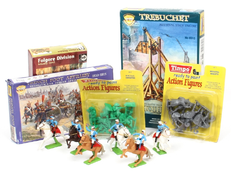 états de 'A+' à 'B' - comprend notamment : cavaliers, infanterie, napoléonniens, croisés & catapulte - majorité des modèles à peindre & à assembler - on y retrouve notamment les marques : BRITAINS, TIMPO & WATERLOO - les boites sont en états de 'b' à 'c'