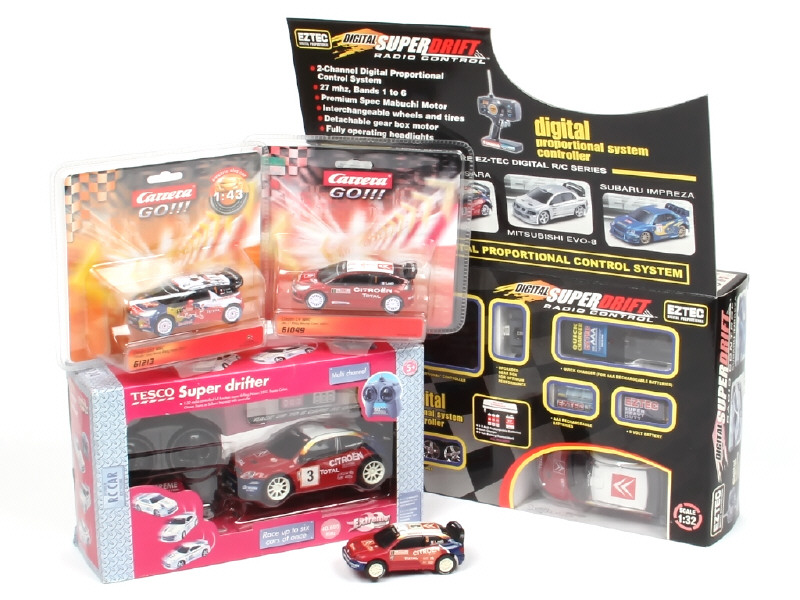 différentes échelles - états de 'A+' à 'B' - non testé - comprend : 3 exemplaires pour circuit & 2 autres radiocommandés - on y retrouve notamment les marques : CARRERA, TESCO & EZTEC - 4 exemplaires en boite (états de 'b' & 'c')
