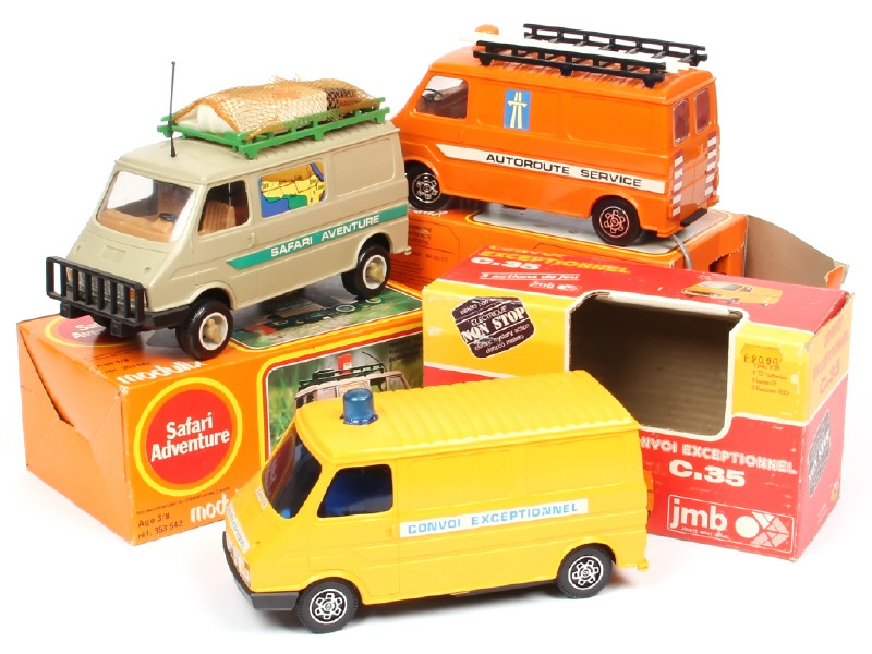 grande échelle - non testé - comprend : 'CONVOI EXCEPTIONNEL', 'AUTOROUTE' & 'SAFARI' - on y retrouve les marques : MODULIX & MONT BLANC - boites avec quelques accrocs & frottements