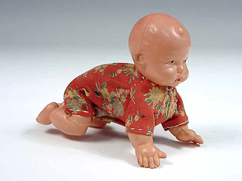DIVERS (JAPON) Bébé à 4 pattes en celluloïd rose & rouge