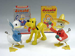 hauteur 16 cm - mécanisme à ressort (fonctionne) - en action, le personnage se dandine & gesticule - boîte avec mention 'LICENCE CREATION WALT DISNEY'