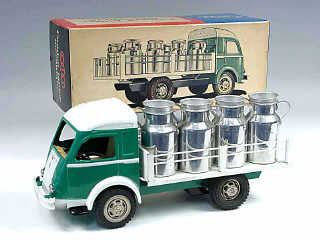 longueur 32 cm - moteur à clef (fonctionne) - avec direction - fabrication de 1961 - avec 4 des 6 bidons d'origine - SUPERBE & EN ETAT EXCEPTIONNEL !