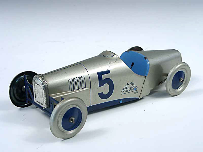 V.B. PARIS (FRANCE) Auto de course monoplace en tôle lithographiée gris métal & bleu