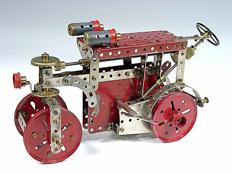 longueur 29 cm - moteur à clef (fonctionne) - avec direction & clef - véhicule assemblé à partir de pièces MECCANO - quelques pièces ont été brossées