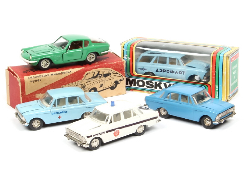 états de 'A' à 'C' - on y retrouve notamment la marque MOSKVITCH - fixation d'un capot déficiente - 2 véhicules en boite (états 'c')