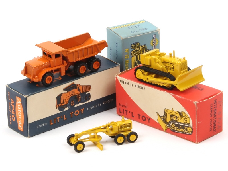 série 'LIT'L TOY' - comprend : AUTOCAR AP40 dumper, INTERNATIONNAL bulldozer & CATERPILLAR grader