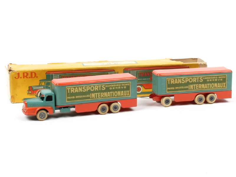 JRD (FRANCE) 127 UNIC LAUTARET 'TRANSPORTS INTERNATIONAUX' avec remorque vert canard & orange