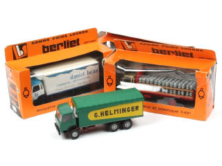 comprend les modèles : plateau brasseur 'KANTERBRÄU', fourgon frigorifique 'DANIEL BEAU' & benne bâchée 'G.HELMINGER'