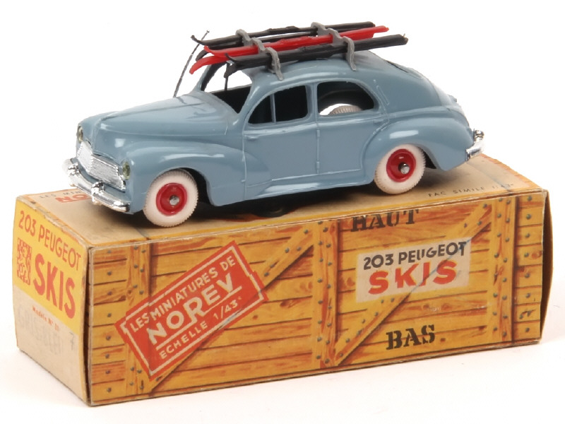 NOREV (FRANCE) 21 PEUGEOT 203 avec skis gris bleu