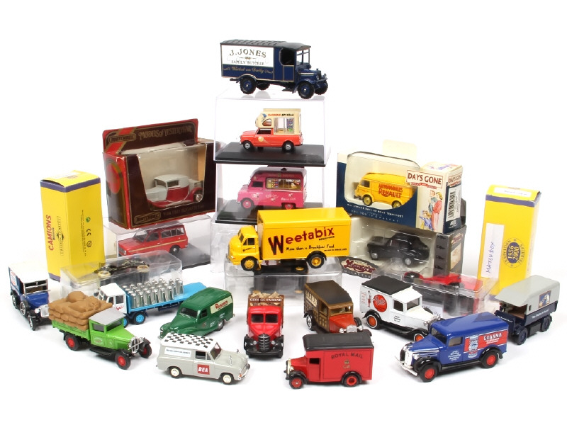 états de 'A+' à 'B' - miniatures reproduisant notamment les modèles : BEDFORD, FORD, AUSTIN, MERCEDES & TALBOT - on y retrouve notamment les marques : CORGI TOYS, DINKY MATCHBOX, MATCHBOX, VANGUARDS & DAYS GONE - 12 exemplaires en boite - possibilités de manques & parties cassées