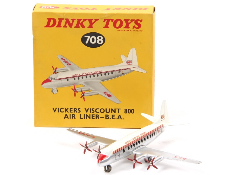 DINKY TOYS (GB) 708 VICKERS VISCOUNT 'BRITISH EUROPEAN AIRWAYS' gris métal, blanc & rouge