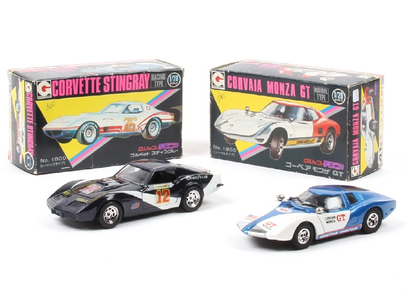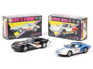 comprend : CORVETTE STINGRAY (importantes traces de métal fatigue particulièrement à l'arrière du modèle) & CORVAIR MONZA GT