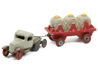 JRD (FRANCE) CITROËN ROSALIE Tracteur Chenillé avec remorque-plateau porte-fûts gris & rouge
