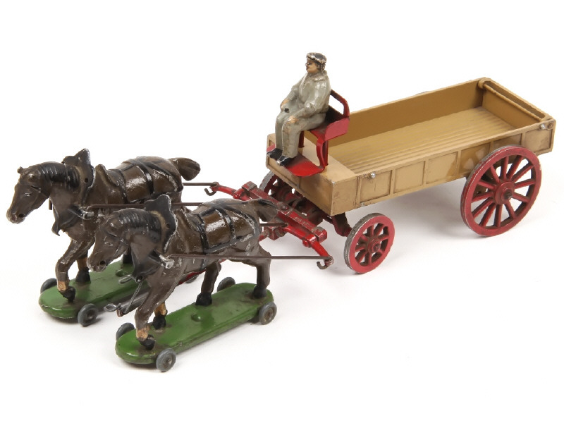longueur de l'ensemble : 25 cm - avec personnage & 2 chevaux (état 'D') - frottements plus ou moins importants par endroits - quelques petits accessoires manquants & incomplets
