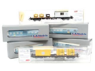 comprend : voitures-voyageurs US ex-PLM B4Dt, B9tz & wagon-plat type R80 à ranchers mobiles - on y retrouve notamment les marques : HEICO MODELL & L.S.MODELS