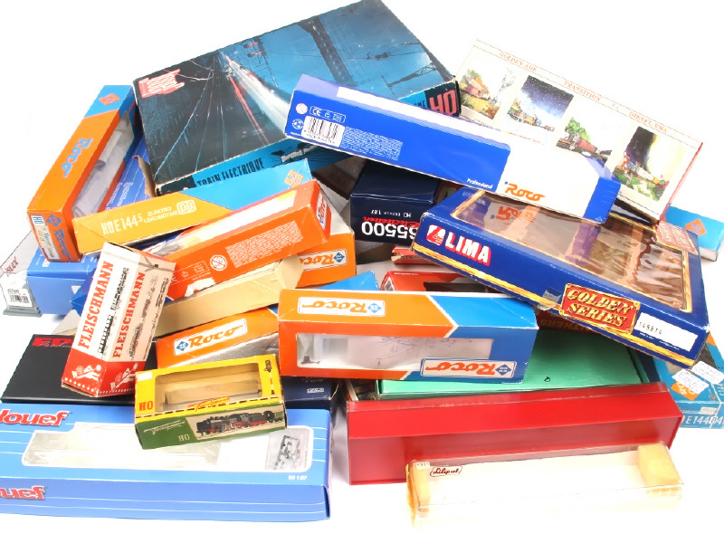 états de 'a' à 'd' - comprend notamment : locomotives, motrices, wagons, voitures-voyageurs & quelques notices - on y retrouve notamment les marques : LIMA, JOUEF, RIVAROSSI, FLEISCHMANN & ROCO