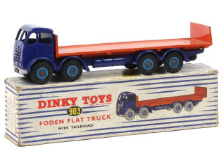 DINKY TOYS (GB) 903 FODEN Plateau à dosseret bleu outremer & orange, jantes bleu vif