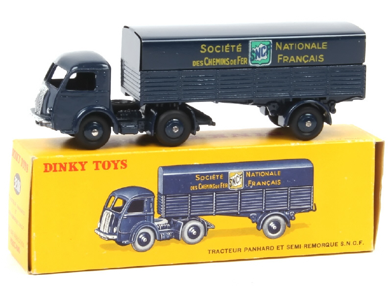 DINKY TOYS (FRANCE) 32AB PANHARD Semi-remorque 'S.N.C.F' (version avec intérieur de toit quadrillé) bleu foncé (fond de l'écusson uni)