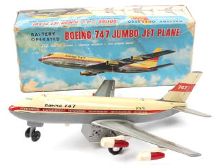 NOMURA (JAPON) BOEING 747 en tôle lithographiée crème, gris métal & rouge