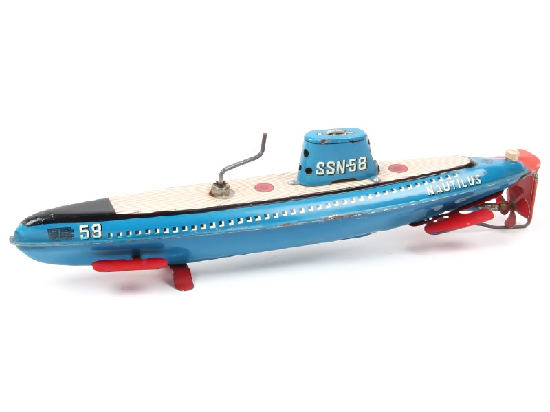 SAN - MARUSAN TOYS (JAPON) Sous-marin 'S.S.N.58-NAUTILUS' en tôle lithographiée bleu, noir, crème & rouge