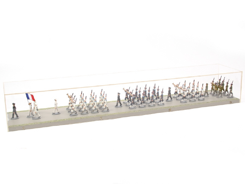 dimensions : 98 x 18 cm - avec figurines & accessoires de la marque QUIRALU (repeints, possibilité d'exemplaires non d'origine) - collés sur socle de présentation avec coffret en plexiglas - BELLE REALISATION ARTISANALE !