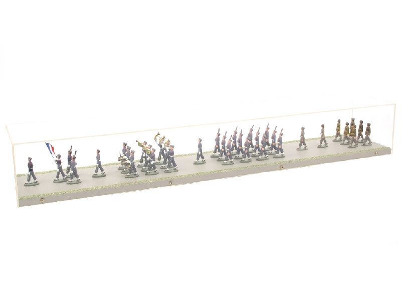dimensions : 98 x 18 cm - avec figurines & accessoires de la marque QUIRALU (repeints, possibilité d'exemplaires non d'origine) - collés sur socle de présentation avec coffret en plexiglas - BELLE REALISATION ARTISANALE !