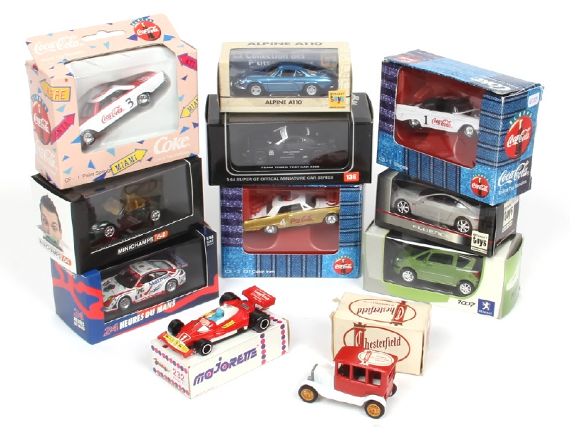 petite échelle - on y retrouve notamment les modèles : PORSCHE, ALPINE, PEUGEOT & RENAULT - comprend notamment les marques : MINICHAMPS, KYOSHO & EFSI (boite en état 'c')