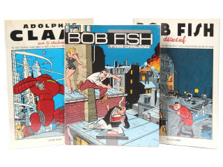 comprend : BOB FISH DETECTIEF (EO 1982 'MAGIC STRIP' en Bruxellois par JEF KAZAK), BOB FISH (rééd. de 1985 LES HUMANOIDES ASSOCIES - traces de colle autours de la reliure) & ADOLPHUS CLAAR (EO 1983 MAGIC STRIP)