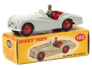DINKY TOYS (GB) 105 TRIUMPH TR2 gris, intérieur & jantes rouges