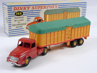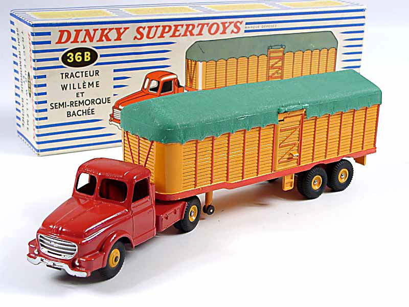 DINKY TOYS (FRANCE) 36B WILLEME Semi-remorque bâché (version avec jantes convexes) rouge & orange, bâche verte