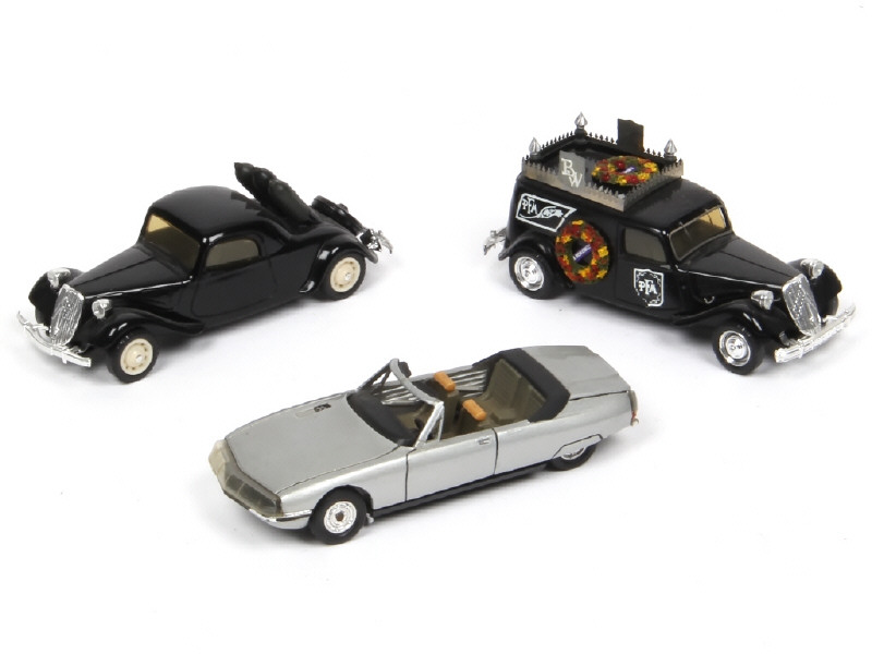 comprend les modèles : TRACTION 15 SIX, corbillard & SM - 2 exemplaires transformés avec accessoires & détails de peinture ajoutés (réalisations sur base SOLIDO) - avec parties cassées