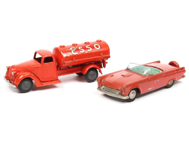 comprend : FORD V8 Citerne 'ESSO' (manque tuyaux - jantes ternies) & FORD THUNDERBIRD 1955 (une petite partie de vitrage cassée - aménagement intérieur encrassé) - pneus séchés