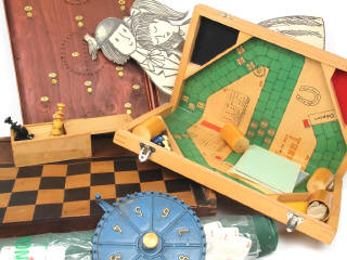 états de 'B' à 'C' - comprend notamment : roulette, jeu d'échecs, billard de table & tapis de jeu - possibilité de quelques manques - on y joint les amoureux de PEYNET sur présentoir bois