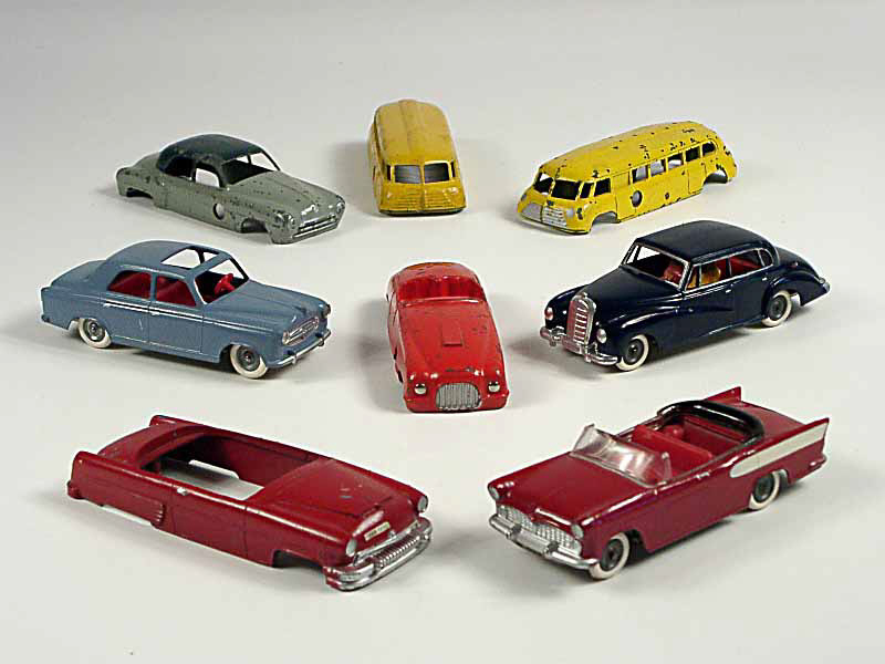 comprend : une PEUGEOT 403, une SIMCA CHAMBORD cabriolet, une MERCEDES 300, une carrosserie de RENAULT FREGATE, une carrosserie de FERRARI, une carrosserie de MERCURY & 2 carrosseries d'autocars - on y joint un couple de personnages - Etats de 'B' à 'R'